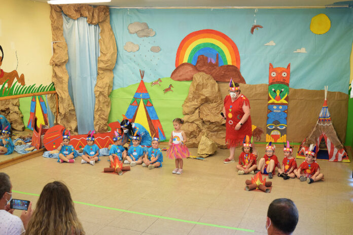 La Escuela Infantil Municipal “Alba” de Argamasilla de Alba clausuró los pasados días 28 y 29 el curso 2020-21 con el teatro-musical titulado: “Los indios sueñan con un arco iris”. Dirigido a padres, madres y familiares, en esta ocasión, la clausura y “graduación” de los mayores, se realizó en dos días y con límite de asistencia a dos familiares por niño o niña.
