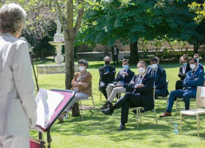 Un acto en el que han estado presentes la directora del INAEM, Amaya de Miguel, el presidente del Gobierno regional, Emiliano García-Page, el presidente de la Diputación; José Manuel Caballero, el alcalde de Almagro, Daniel Reina, entre otros.