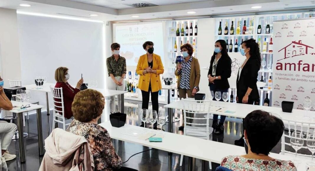 El maridaje de chocolates artesanos con vinos manchegos es una experiencia gastronómica novedosa y atractiva que recabó la atracción de las mujeres rurales de AMFAR en Socuéllamos. El cacao, al igual que el vino, posee una gran diversidad de aromas frutales o florales que pueden ayudar a saborear mejor el vino.