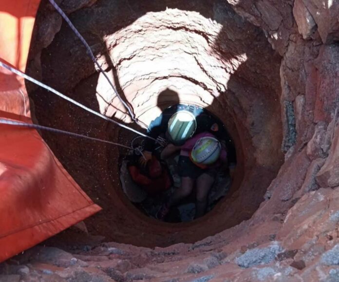 El SEPEI ha movilizado a un cabo, tres bomberos y dos vehículos autobombas. Han sido dos de estos profesionales los encargados de descender hasta el interior del pozo para realizar las labores que han concluido con el rescate de la mujer.