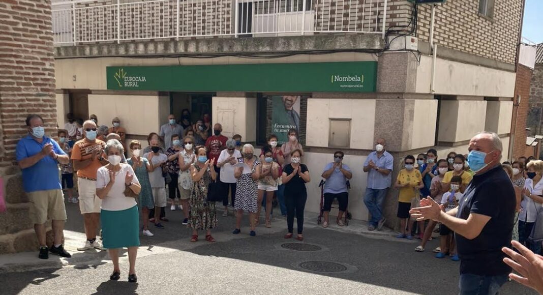 Tras concentrarse a las puertas del Ayuntamiento y después del repicar de las campañas de la Casa Consistorial, los vecinos de Nombela han roto en aplausos en memoria de la vecina presuntamente asesinada.