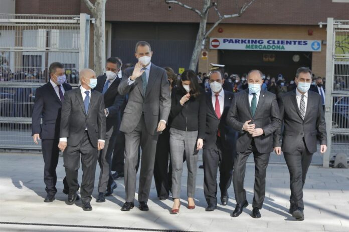 Más de un centenar de personas se han agolpado este viernes a las puertas de la nueva Ciudad de la Justicia de Albacete para recibir al rey Felipe VI entre aplausos y gritos de «viva España».