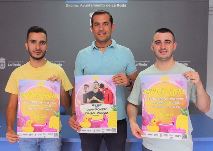 El concejal de Festejos, Luis Fernández, acompañado por dos de los promotores de la iniciativa, los rodenses Moisés Collado y Miguel Tébar, presentaron ‘Paradise Festival’. Un evento musical a celebrar en la pista municipal el 16 de julio, con la actuación de artistas de talla nacional como el cantante Danny Romero, y los djs Ballesteros e Iván Ortiz; junto a djs locales como Javi Simarro, Andrés Picazo e Ismael Alba, entre otros.
