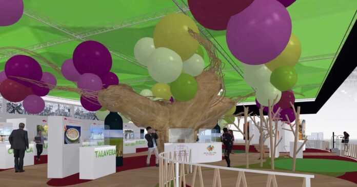 El puesto castellanomanchego en Fitur estará cubierto con una lona verde en el techo que simulará el color de la vid, con una raíz «perfectamente dibujada en el estand».