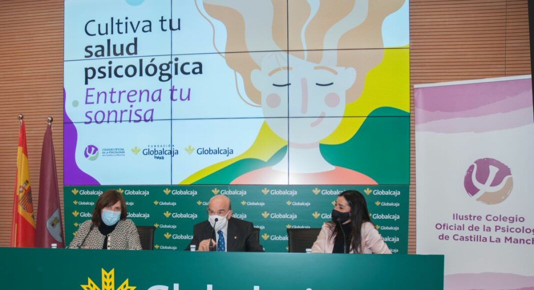La decana del Colegio de la Psicología de Castilla-La Mancha, María Dolores Gómez, y el presidente y la directora general de la Fundación Globalcaja HXXII, Rafael Torres y Carla Avilés, han presentado este jueves el programa Cultiva tu salud psicológica. Entrena tu sonrisa’, una iniciativa que tiene como objetivo servir de apoyo a aquellas personas que están pasando por situaciones complicadas.