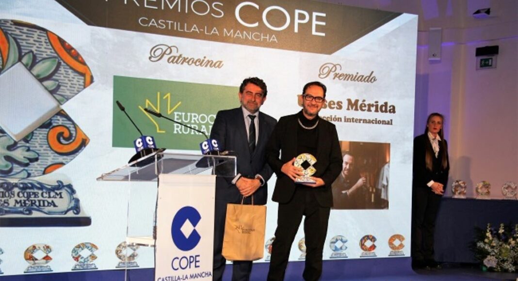 El director de la División de Relaciones Institucionales de la entidad financiera, Miguel Ángel Escalante Pinel, entregó uno de los reconocimientos, en concreto el ‘Premio a la Proyección Internacional’, que ha recaído en el diseñador de moda Ulises Mérida. Galveño de nacimiento, Ulises Mérida se formó en el Centro Superior de Diseño de Moda de Madrid de la Universidad Politécnica. En septiembre consiguió el Premio a la Mejor Colección en la Pasarela Mercedes Fashion Week. Además, es uno de los embajadores de la marca CLM junto con celebridades como Andrés Iniesta o el cocinero Pepe Rodríguez, entre otros.