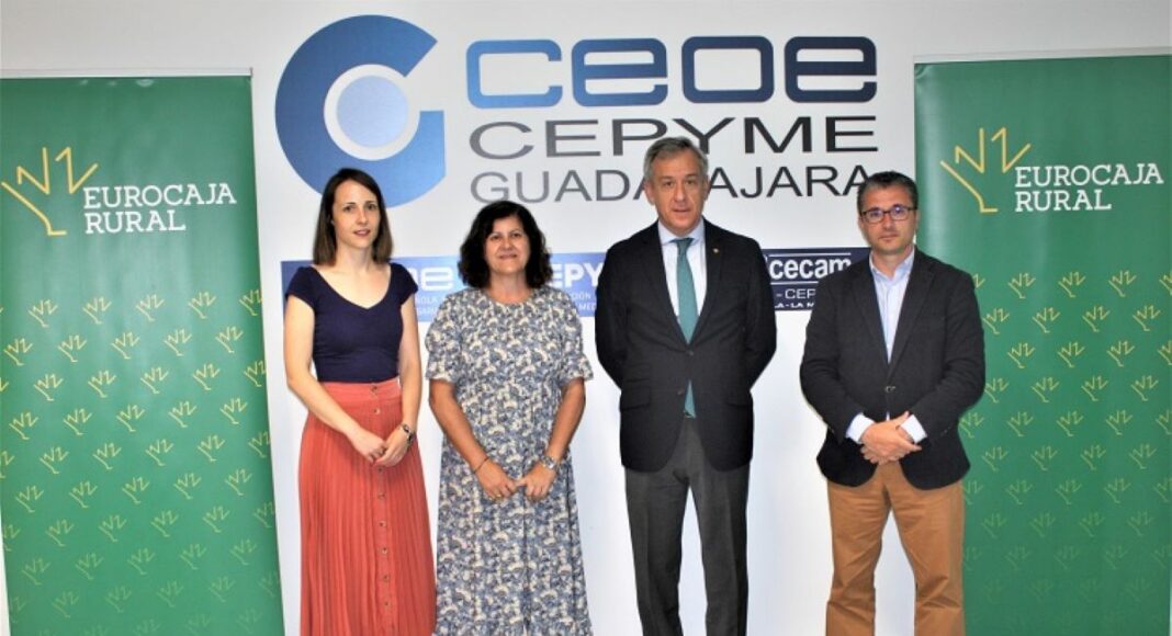 El convenio ha sido firmado en el Centro de Formación y Negocios de CEOE-CEPYME Guadalajara por el presidente de Eurocaja Rural, Javier López Martín, y la presidenta de CEOE-CEPYME Guadalajara, María Soledad García Oliva, en presencia de la directora territorial de la entidad financiera en Guadalajara, Trinidad Talavera Torralvo; y del secretario general de la patronal alcarreña, Javier Arriola Pereira.