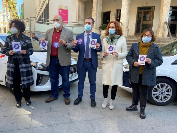 A partir de este lunes, los más de un millar de taxis de Castilla-La Mancha funcionarán como Puntos Violeta para ayudar a las mujeres víctimas de violencia de género y llevarán una etiqueta de color violeta como distintivo con la frase ‘La violencia machista la paramos unidas’, que ha sido entregada, junto a un guía con consejos sobre cómo actuar a las víctimas y familiares o amigos, a la Asociación Provincial de Taxistas.
