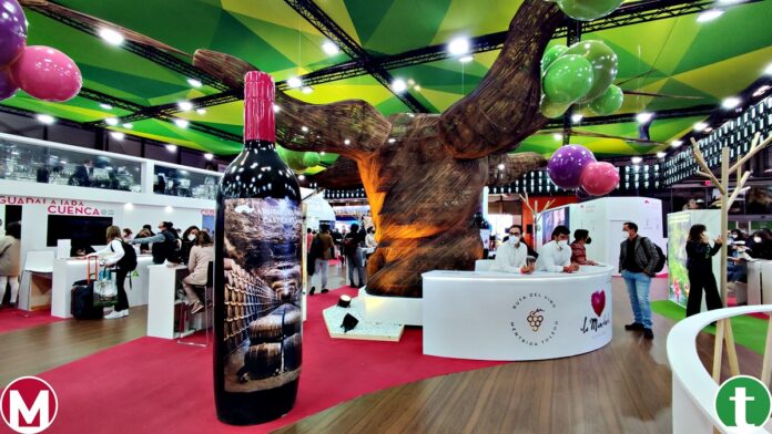 El estand, de más de 1.500 metros cuadrados, está dispuesto en dos plantas con una gran cepa central, y una lona que cubre el estand de color verde que emula las pámpanas, en un guiño al potencial gastronómico y enoturístico de la región, hilo conductor de la propuesta de Castilla-La Mancha para esta edición de la feria. En la segunda planta hay una amplia zona de negocios para profesionales, y la planta baja está dividida en espacios temáticos que incluyen una zona de degustaciones gastronómicas y un espacio de showcooking en directo.