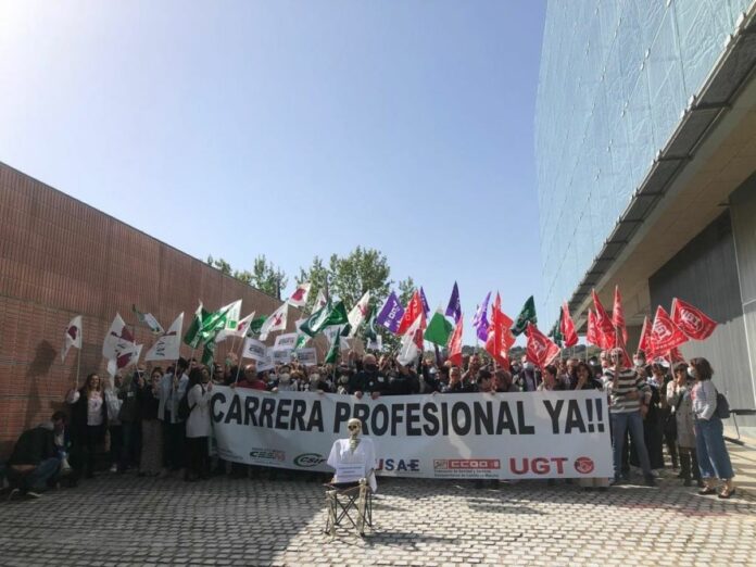 Los sindicatos con representación en la Mesa Sectorial del Servicio de Salud de Castilla-La Mancha (Sescam) -Satse, CESM, CSIF, Usicam, USAE, CCOO y UGT- se han concentrado este viernes a las puertas de la sede central del Sescam en Toledo, a la que han asistido varias decenas de personas, para clamar que es «una vergüenza» que la Comunidad Autónoma sea la única del país que no ha reanudado la Carrera Profesional, advirtiendo de que este acto de protesta es «el principio» de una serie de actuaciones si no se ve cumplida esta reivindicación.