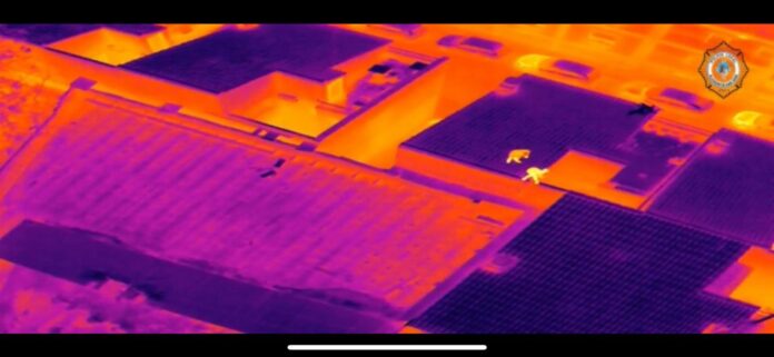 En este caso, los agentes lograron volar el dron por encima de los tejados sobre los que dos individuos merodeaban, obteniendo un plano cenital del escenario haciendo uso de la visión térmica que, debido a la poca visibilidad por la oscuridad propia de la noche, permitió identificar sus movimientos y evitar de forma efectiva que los sujetos incurrieran en un hecho delictivo.