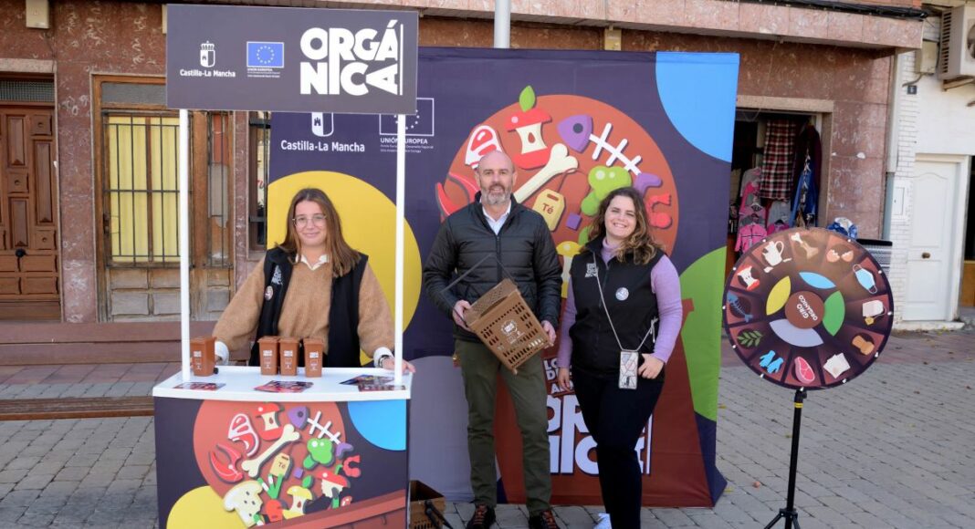 El alcalde de Argamasilla de Alba y presidente de la Mancomunidad de Servicios Comsermancha, Pedro Ángel Jiménez, ha visitado este sábado el stand de la campaña de información y sensibilización sobre el correcto uso del contenedor marrón, para los residuos orgánicos, puesta en marcha por el Gobierno regional a través de la Consejería de Desarrollo Sostenible e instalado en la plaza de la Constitución de la localidad.