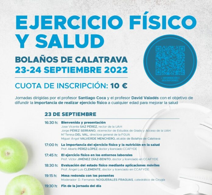 La localidad de Bolaños de Calatrava abordará a través de un curso de la Fundación General de la Universidad de Alcalá de Henares la importancia de realizar ejercicio físico a cualquier edad para mejorar la salud. Estas jornadas denominadas ‘Ejercicio físico y salud’ se pondrán en marcha en colaboración con el Ayuntamiento de Bolaños los días 23 y 24 de septiembre y estarán dirigidas por los profesores Santiago Coca y David Valadés.