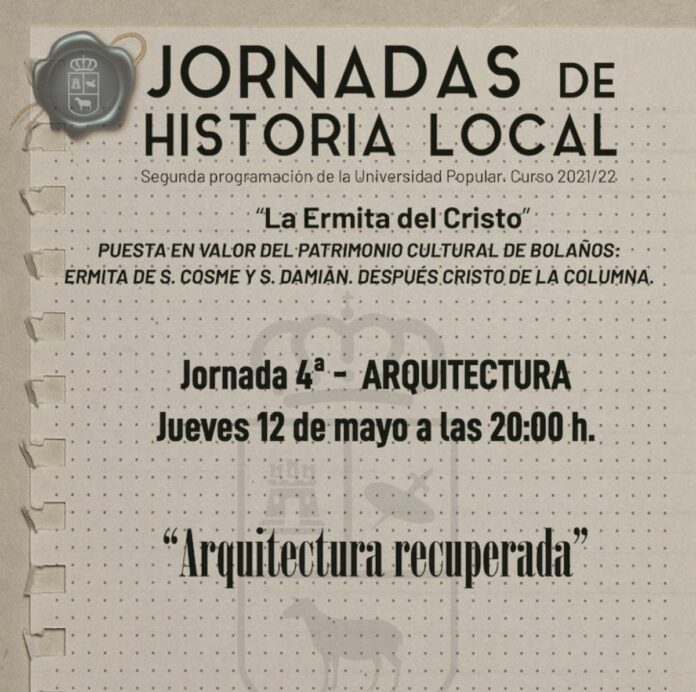 Una vez conocida la historia y los secretos que esconden las pinturas de la ermita del Cristo de la Columna, la conferencia de este jueves de las Jornadas de Historia local en torno a la misma, organizadas por el Ayuntamiento de Bolaños y coordinadas por el Archivo Municipal y la Universidad Popular, se centrará en la dimensión Arquitectónica de la antigua ermita de San Cosme y San Damián. Como es habitual, la cita tendrá lugar a las 20:00 horas en el lugar de culto.