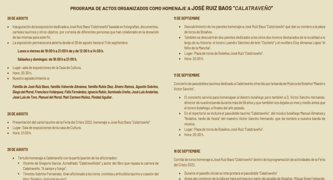 El Ayuntamiento de Bolaños de Calatrava prepara un programa de actos conmemorativos en homenaje a su paisano el diestro José Ruis Baos ‘Calatraveño’ quien falleció el pasado 25 de enero.