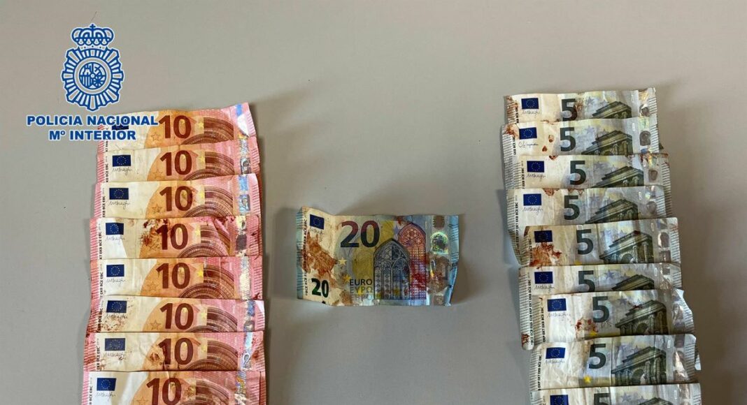 El joven fue localizado momentos después en una zona próxima, apreciando cortes sangrantes en sus brazos y manos, por los que tuvo que ser trasladado de urgencias a servicios médicos. Ocultos entre sus ropas se encontraron 150 euros manchados de sangre.