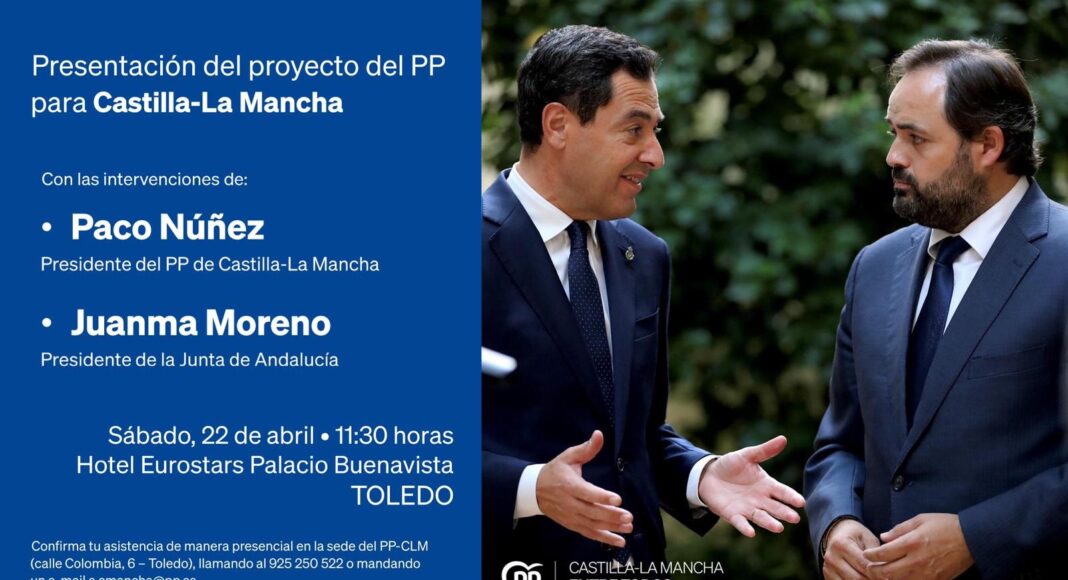El presidente de la Junta de Andalucía, Juanma Moreno, estará con el presidente del PP en Castilla-La Mancha, Paco Núñez, en un acto en Toledo el próximo sábado 22 de abril.