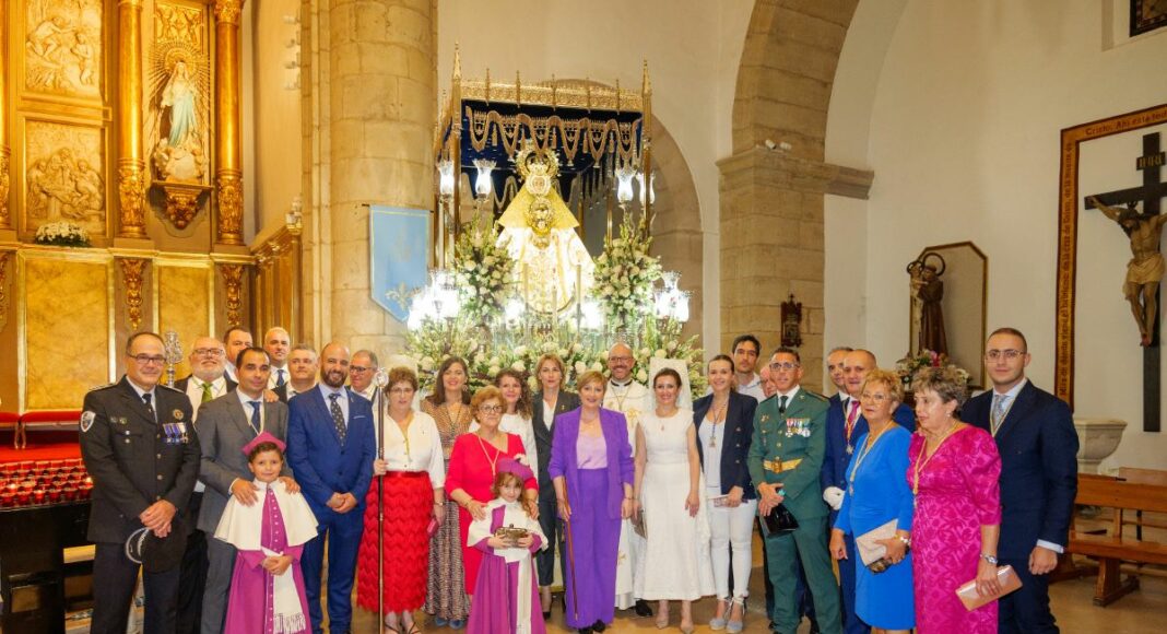 En esta ocasión, debido a condiciones climáticas adversas, el tradicional «ofrecimiento» a la Virgen, conocido como «puja de la Virgen,» que normalmente tiene lugar en la glorieta frente a la Iglesia San Juan Bautista, se trasladó al salón de actos de la Casa de Medrano. Este cambio no mermó el entusiasmo de los devotos, quienes pujaron con determinación por los productos donados generosamente por los vecinos y vecinas, contribuyendo así a los fondos necesarios para el mantenimiento de los gastos relacionados con la patrona.