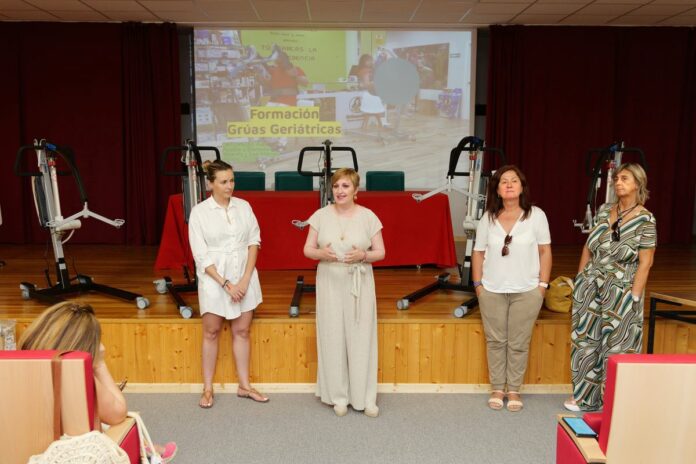 Con el objetivo de proporcionar apoyo técnico y medidas preventivas para el trabajo en el ámbito de la atención a personas dependientes, el Ayuntamiento aprobó la adquisición de 5 grúas eléctricas a la entidad Ortopedia AYB, S.L. Estas herramientas se adquirieron a un precio de 3.250 €, IVA incluido. Para asegurar un uso eficiente y seguro, se llevó a cabo una instrucción teórico-práctica de manejo y mantenimiento de las grúas, dirigida por los expertos de Ortopedia AYB, S.L., Yolanda y José Manuel. Entre las asistentes se contó con las profesionales del Servicio de Ayuda a Domicilio y el alumnado del Programa de Recualificación y Reciclaje Profesional «Atención Sociosanitaria a Personas Dependientes en Instituciones Sociales».