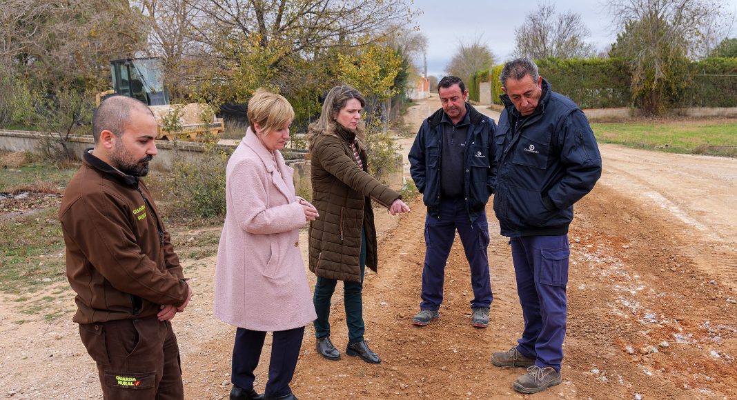 La alcaldesa, Sonia González, y la concejala de Agricultura, Ganadería y Medioambiente, Pilar Mateos, junto con Jesús Varea, Guarda Rural, visitaron las obras en el camino de Alarcos para supervisar el progreso de los trabajos.