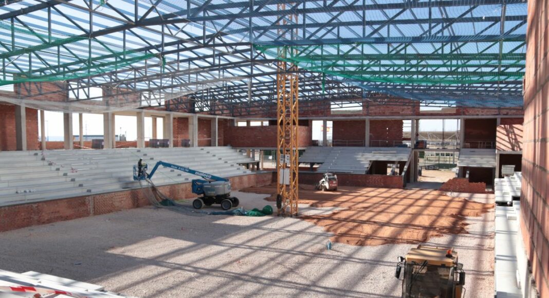 En la parcela situada entre la piscina cubierta, el IES ‘Azuer’, el CEIP ‘Enrique Tierno Galván’ y la calle Sanitarios poco a poco va dejándose ver lo que será el futuro pabellón polideportivo de Manzanares. Una obra que marcha “a buen ritmo” y que actualmente se encuentra “en torno al 35-40%” de su ejecución.