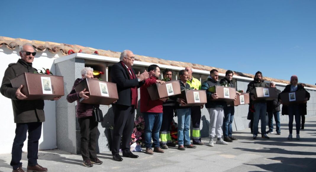Emotivo acto el celebrado el sábado en el Vivero de Empresas y en el cementerio municipal. La Asociación para la Recuperación de la Memoria Histórica (ARMH) entregó los restos de seis víctimas de la dictadura franquista a sus familias que han sido identificadas genéticamente tras ser exhumadas en mayo de 2021 de dos fosas comunes en el exterior del cementerio de Manzanares.