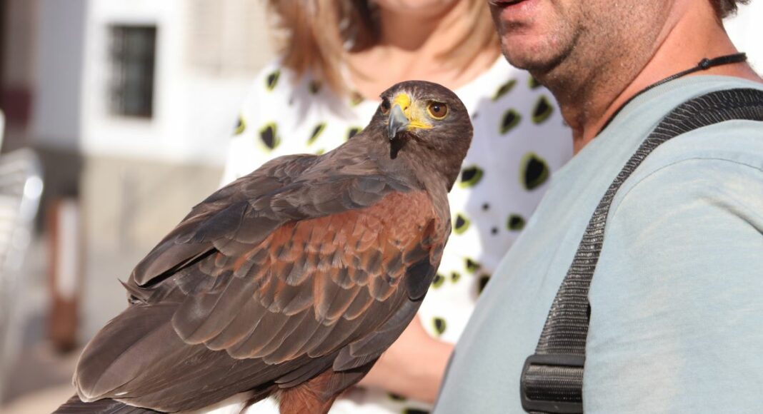 Las palomas que normalmente pasan los días en la plaza de la Constitución estaban inquietas en la mañana de este jueves. La razón, un águila de Harris que desde hoy se va a convertir en su peor enemigo. Y es que el Ayuntamiento comienza hoy una “experiencia piloto” para controlar la plaga de palomas utilizando este ave rapaz, conocida también como Parabuteo unicinctus. Dos veces por semana durante todo el verano sobrevolará algunos puntos conflictivos de la localidad como la plaza de la Constitución o el parque del científico ‘Julián Gómez-Cambronero’. “Estamos muy ilusionados con este método porque creemos que los resultados van a ser casi inmediatos”, explicó Isabel Díaz-Benito, concejala de Medio Ambiente.