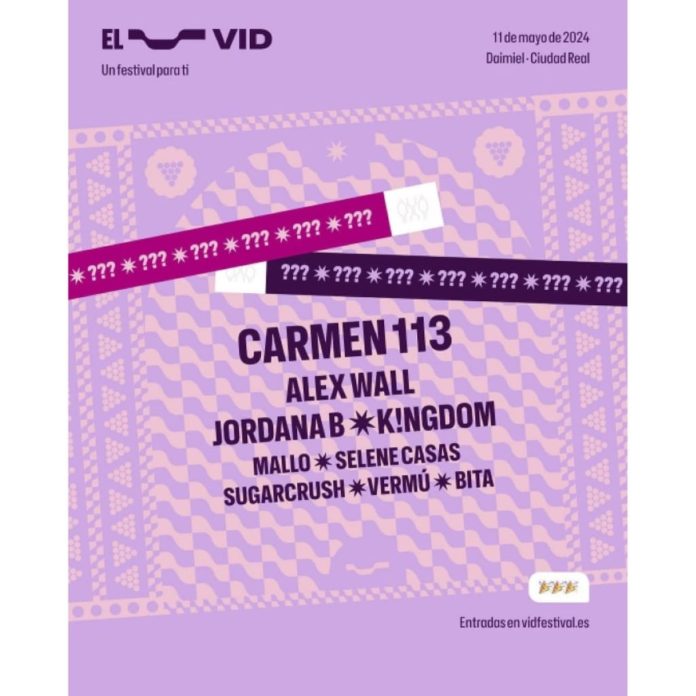 El Vid Festival 2024 ha anunciado sus primeras confirmaciones para su 2ª edición. Carmen 113, Alex Wall, Jordana B, K!ngdom, Mallo, Selene Casas, Sugarcrush, Vermú y Bita componen el primer avance del cartel de este evento que se celebra en Daimiel (Ciudad Real).