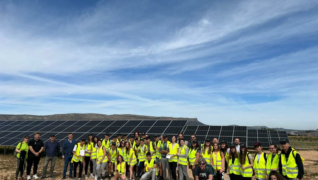 Alumnos de 4º curso de Educación Secundaria Obligatoria (ESO) del Instituto ‘Herminio Almendros’, de Almansa, han visitado esta semana al parque solar fotovoltaico “PF el Jota I”, con una capacidad instalada de 1.000 kW, ubicado en la localidad albaceteña, cuya construcción finalizó a principios de este año. La instalación cuenta con una dimensión capaz de abastecer las necesidades energéticas de 500 viviendas durante un año.