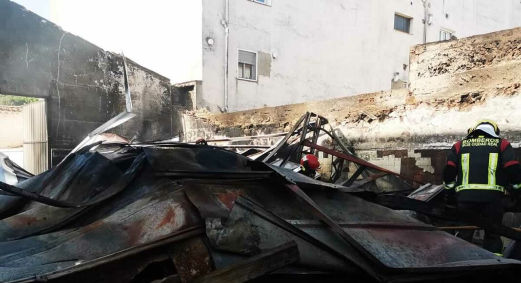 Como consecuencia de las llamas, el techo del almacén ha colapsado. Los bomberos de Almadén y Puertollano ya han dado por controlado el incendio y están refrescando la zona a la espera de que pueda extinguirse.