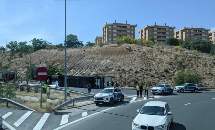 Hasta el lugar se han trasladado efectivos de la Policía Local, bomberos de Toledo y una ambulancia de urgencias. A consecuencia del accidente, el camión ha perdido parte de su combustible. Una grúa será la encargada de retirar el vehículo.