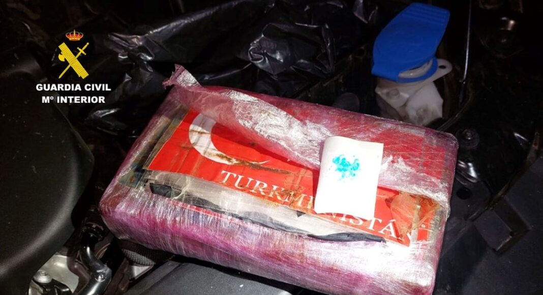 Tras la identificación de sus dos ocupantes, los agentes del dispositivo realizaban una inspección, tanto de sus pertenencias como del vehículo en el que viajaban, localizando, en el interior del filtro de aire, un paquete que contenía 1.100 gramos de una sustancia en polvo, de color blanquecino que, tras ser analizada con un narcotest, resultaba ser cocaína.