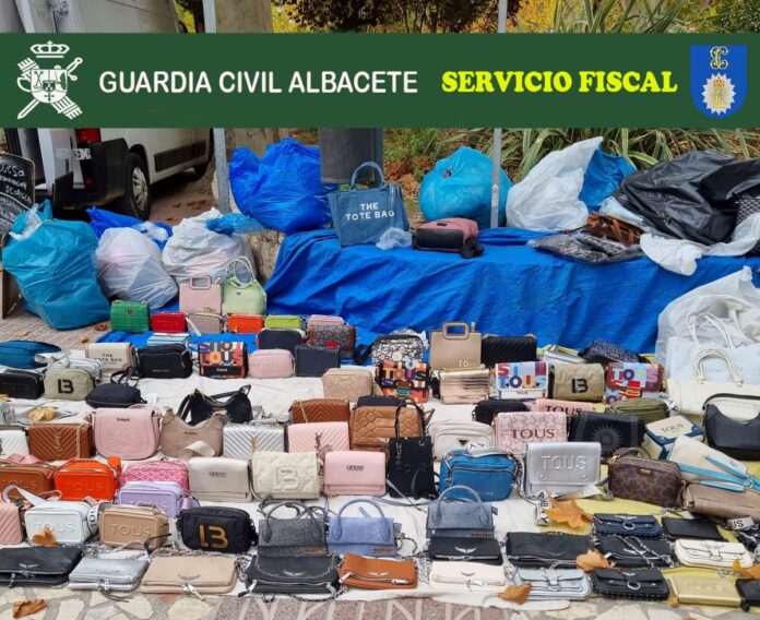 Dentro de los servicios preventivos que la Guardia Civil de Albacete realiza en toda su provincia, encaminados a detectar y combatir la venta de prendas y artículos de marcas falsificadas y erradicar su comercialización, efectivos de Destacamento Fiscal y de Fronteras tuvieron conocimiento de la ilícita actividad que estarían llevando a cabo varias personas en mercadillos de la provincia albaceteña.