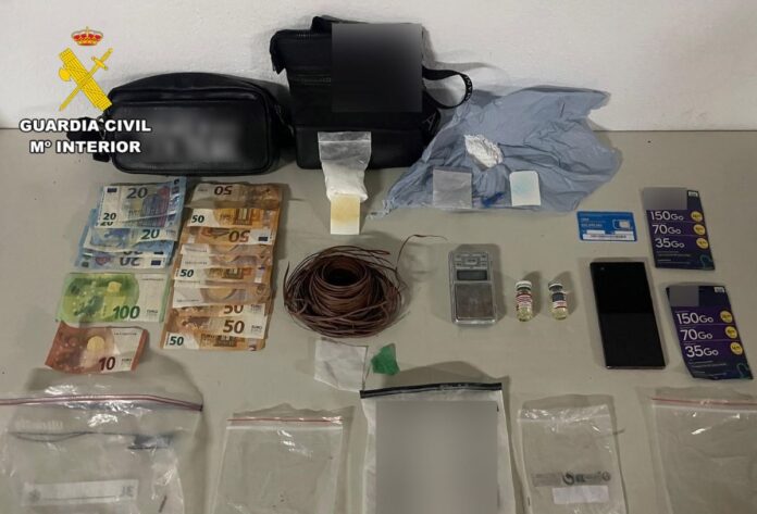 Además, se intervinieron 750 euros en efectivo, supuestamente procedentes de la venta de los estupefacientes, un teléfono móvil y varias tarjetas SIM para telefonía.