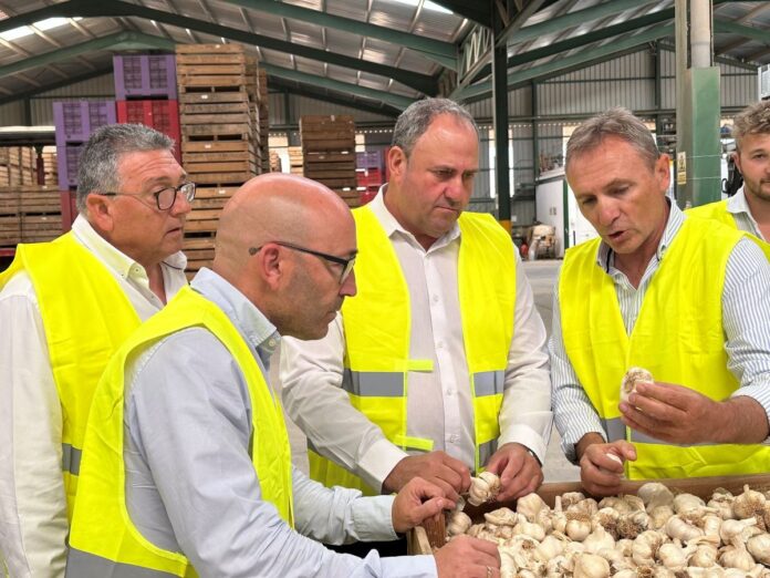 El Gobierno de Castilla-La Mancha ha puesto en valor el ajo como «un cultivo social cuyo impacto económico ayuda a mantener la población en los pueblos, además de ser ejemplo de uso eficiente del agua», consideraciones que ha hecho el consejero de Agricultura, Ganadería y Desarrollo Rural, Julián Martínez Lizán, en Balazote, donde ha visitado la Cooperativa ‘Santa Mónica’.