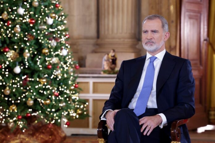 El undécimo mensaje navideño del Rey Felipe VI registró una audiencia media de 5.908.000 de espectadores y un 62,4 % de cuota de pantalla, en el conjunto del total de 31 cadenas que emitieron el discurso en directo (‘simulcast’) y que son medidas por Kantar. El de 2024 se convierte en el mensaje de Navidad del Rey con menor seguimiento de los últimos cinco años, aunque en Castilla-La Mancha tuvo una audiencia del 78 %.