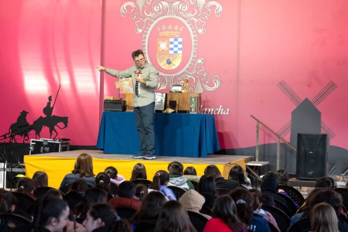 La Concejalía de Cultura, a través de la Biblioteca Municipal Cervantes, ha organizado un encuentro único y original con el narrador Oswaldo Pai, que ha tenido lugar este martes 30 en la Carpa del Auditorio de Verano. Bajo el título «Artilogios, un elogio al artilugio de un juglar particular», Pai ha presentado un espectáculo que ha cautivado al público. Esta actividad es la última de las programadas dentro del programa “Abril, mes de las letras” por la Concejalía de Cultura para este mes de abril, culturalmente muy importante para Argamasilla de Alba.