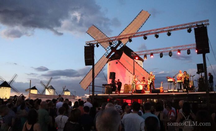 El Cerro de la Paz, en pleno Albaicín de Campo de Criptana, acogió el pasado 7 de julio el tercer concierto del AirénFest 2024. Este evento reunió a las seis bodegas locales en un entorno mágico, donde los asistentes pudieron disfrutar de una tarde-noche relajada degustando vinos de la región y escuchando la música de Depedro, gracias al Plan de Sostenibilidad Turística en Destino, con el apoyo del Ayuntamiento, el Gobierno de España, la Junta de Comunidades y el patrocinio de Turismo de Castilla-La Mancha, junto con la colaboración de la DO La Mancha y Rutas del Vino de La Mancha.