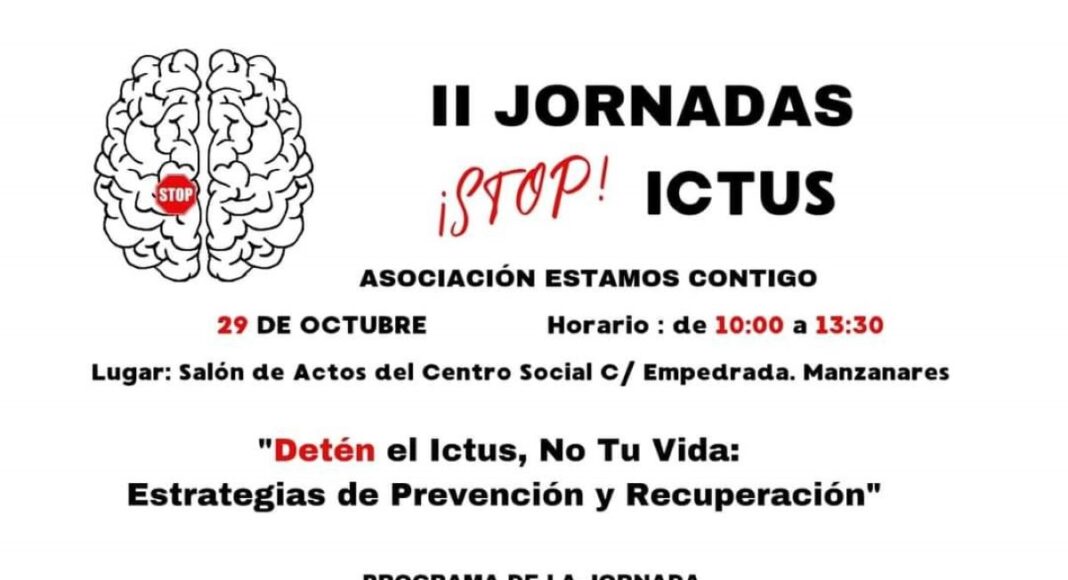Con motivo del Día Mundial del Ictus, que se conmemora el 29 de octubre, ‘Estamos Contigo’ vuelve a organizar una jornada dedicada a esta enfermedad, que es la segunda causa de muerte en España -la primera en mujeres-, la primera causa de discapacidad adquirida en personas adultas y la segunda de demencia. En esta segunda edición, bajo el lema ‘Detén el ictus, no tu vida’, la asociación manzanareña ha querido centrar su programa en las estrategias de prevención y recuperación.
