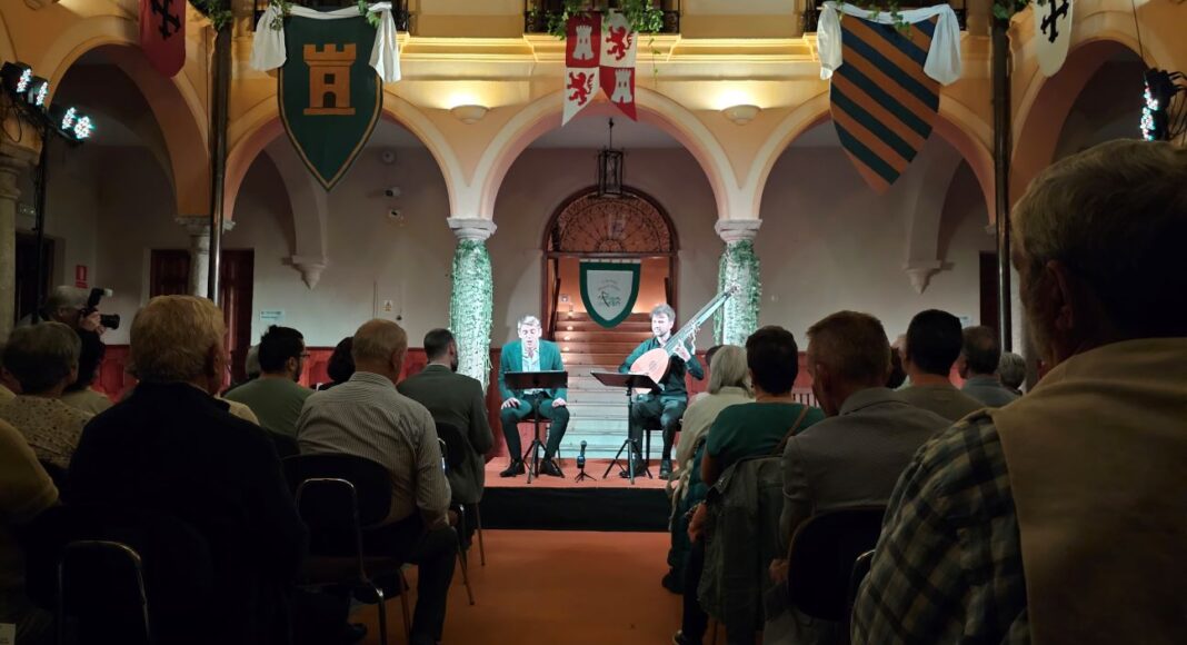 Ya se respira ambiente medieval en Manzanares. Las calles se están engalanando para el fin de semana central de las Jornadas Medievales 2024. Pero el pasado sábado tuvimos un pequeño aperitivo gracias a un acto que cumple su cuarta edición. El festival de música antigua ‘Encomienda de Manzanares’ volvió a transformar el patio del centro cultural ‘Ciega de Manzanares’ en un mágico recinto de conciertos para disfrutar, en esta ocasión, con una actuación vocal de música barroca “de las que no se olvidan fácilmente” a cargo del tenor Luken Munguira y el laudista Sergio Bermúdez. Ambos interpretaron obras desde el renacimiento tardío de John Dowland hasta el esplendor del barroco de Purcell y Bach, todas ellas con la muerte como tema central.