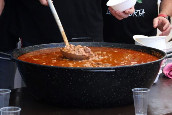 Aunque hubo que hacer frente a las altas temperaturas del domingo, todo el mundo aguardó pacientemente su turno para recoger su comida y su bebida. Una espera que estuvo amenizada por la música de la charanga Stacazzo y que mereció la pena porque la caldereta, tal como reflejaron las caras de felicidad y los platos vacíos que enseguida se vieron en los corrillos de gente, estuvo deliciosa.