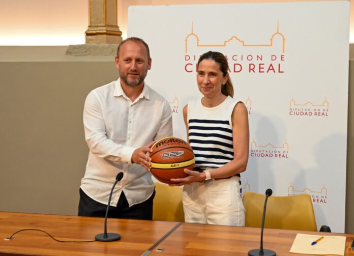 La vicepresidenta primera de la Diputación y delegada del Área de Deportes, Milagros Calahorra, junto al presidente de la Federación de Baloncesto de Castilla-La Mancha, José Esteban Gálvez, han presentado esta mañana en rueda de prensa la Copa Diputación de Baloncesto 2024 en categorías masculina y femenina, que arrancará la primera semana de septiembre.