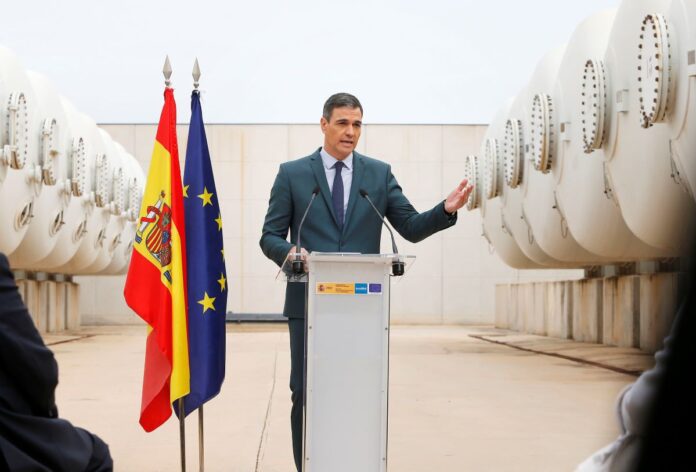 Sánchez ha realizado este discurso, en una comparecencia ante los periodistas sin preguntas, tras visitar las instalaciones de la desaladora de Torrevieja (Alicante), «la mayor planta desalinizadora de toda Europa».