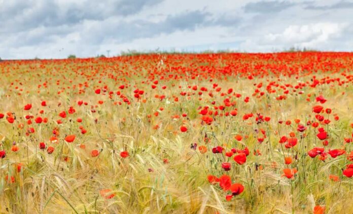 En Polán (Toledo), un municipio de 3.500 habitantes, se cuentan por decenas de hectáreas las que ha invadido la amapola silvestre, que nacen en los campos de cereales de los agricultores de la zona.