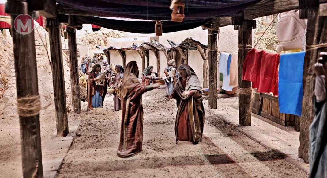 La visita comienza con una representación detallada de cuatro escenarios emblemáticos: Nazaret, Ain Karem, Belén y Egipto. Cada espacio está cuidadosamente decorado con paisajes que evocan los pasajes bíblicos más significativos, como el Nacimiento, la Anunciación y la llegada de los Reyes Magos. Cerca de 400 figuras distribuidas a lo largo de 64 metros cuadrados capturan la atención del visitante por su nivel de detalle y realismo.