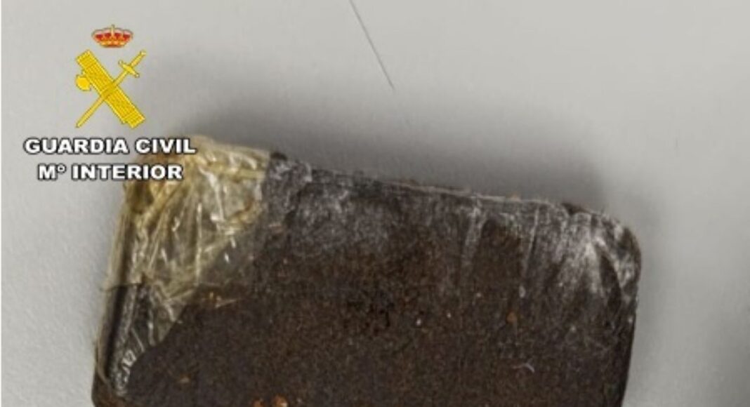 Tras la parada de un vehículo, que resultó sospechoso a los agentes de la Guardia Civil, se procedió a la identificación de sus dos ocupantes, mostrando durante la intervención policial evidentes señales de nerviosismo, lo que llevó a los agentes del Cuerpo a inspeccionar tanto el interior del vehículo como los efectos personales de ambos, localizando en la bandolera de uno de ellos una pastilla de hachís que arrojó un peso de 29 gramos.