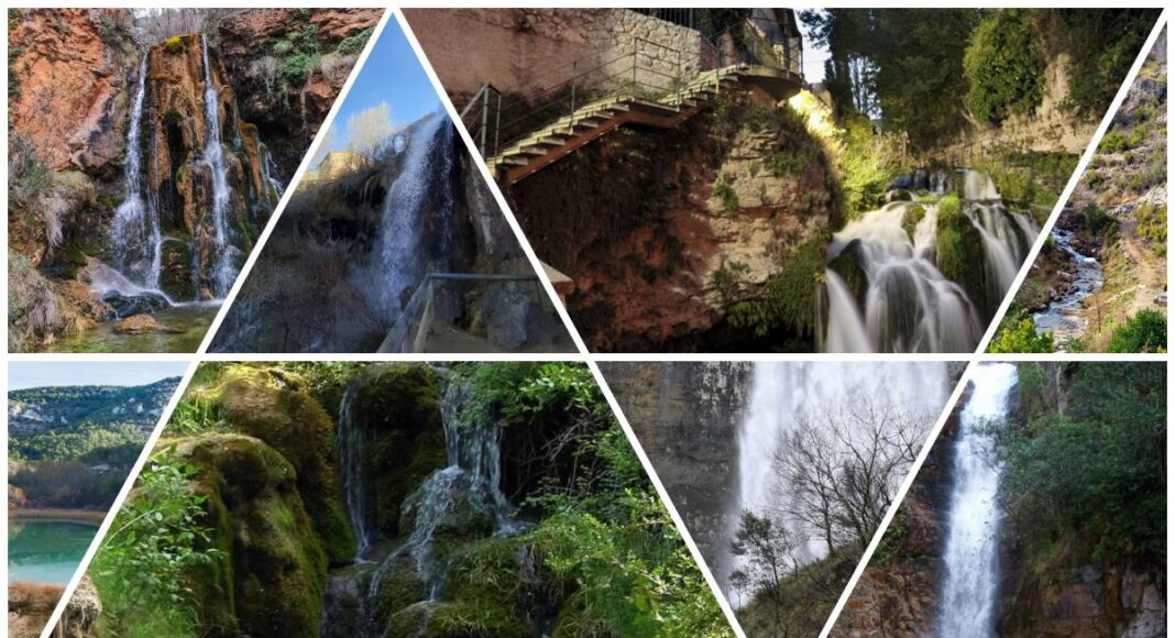 Uno de los paisajes más icónicos de Castilla-La Mancha. Las aguas del Cuervo emergen de la roca travertina formando una cortina de cascadas sobre un manto verde de musgo. El entorno, de gran valor ecológico, alberga especies como el acebo, el tilo o el abedul, típicas de climas más húmedos.