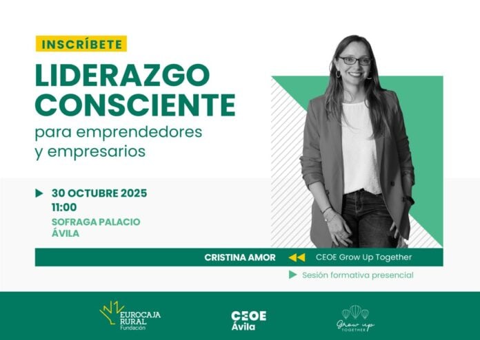 Fundación Eurocaja Rural y la Confederación Abulense de Empresarios (CEOE Ávila) colaboran de nuevo en una sesión formativa para los empresarios abulenses. En esta ocasión, se trata de una jornada sobre liderazgo consciente, impartida por la experta en neuroemprendimiento Cristina Amor, que se celebrará en el Salón Cúpula de Sofraga Palacio el próximo 30 de octubre.