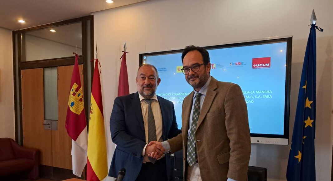 El rector de la Universidad de Castila-La Mancha (UCLM), Julián Garde, y el secretario de Estado de Telecomunicaciones e Infraestructuras Digitales, Antonio Hernando, han firmado hoy en el Campus de Toledo un acuerdo para poner en marcha un programa de formación, divulgación y concienciación en ciberseguridad. Las acciones previstas estarán diseñadas y ejecutadas a través del Instituto Nacional de Ciberseguridad de España (INCIBE).
