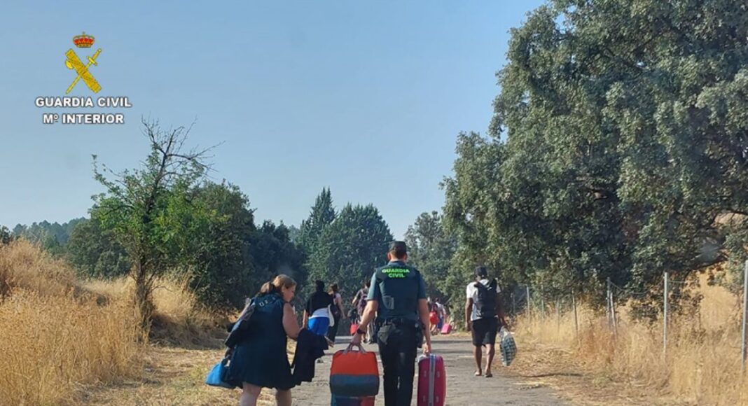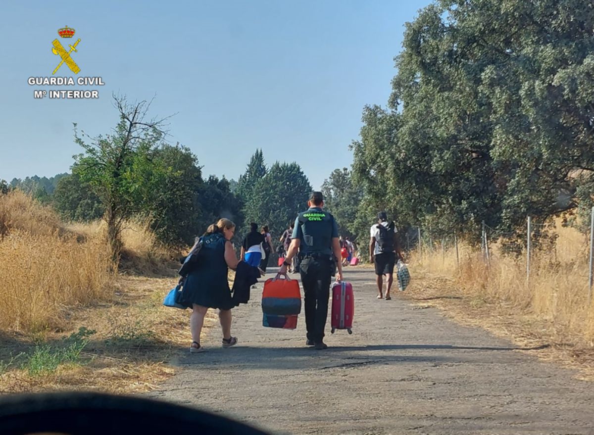 La patrulla de la Guardia Civil del puesto de Almuradiel auxilia a los pasajeros de un tren detenido en la estación de ferrocarril de Venta de Cárdenas, por la avería de otro tren en la misma vía férrea entre Jaén y Madrid.